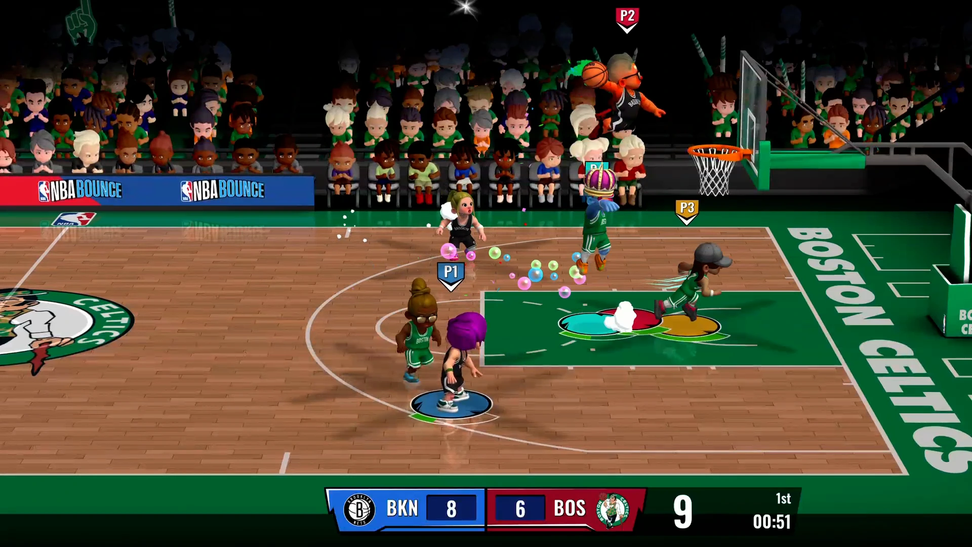 Accessible and fun for players of all ages, NBA Bounce features simple controls, three difficulty settings, and helpful tutorials to ensure even the youngest rookies can get in on the action. Players can enjoy a variety of modes, from fast-paced 3v3 Quick Matches and full NBA Seasons to custom tournaments for up to four local players. The standout Party Mode adds wild twists each quarter – like shocking Electroball or confetti-filled Ball Pop! – making it the perfect choice for family game nights and friendly rivalries with up to four players sharing the court.