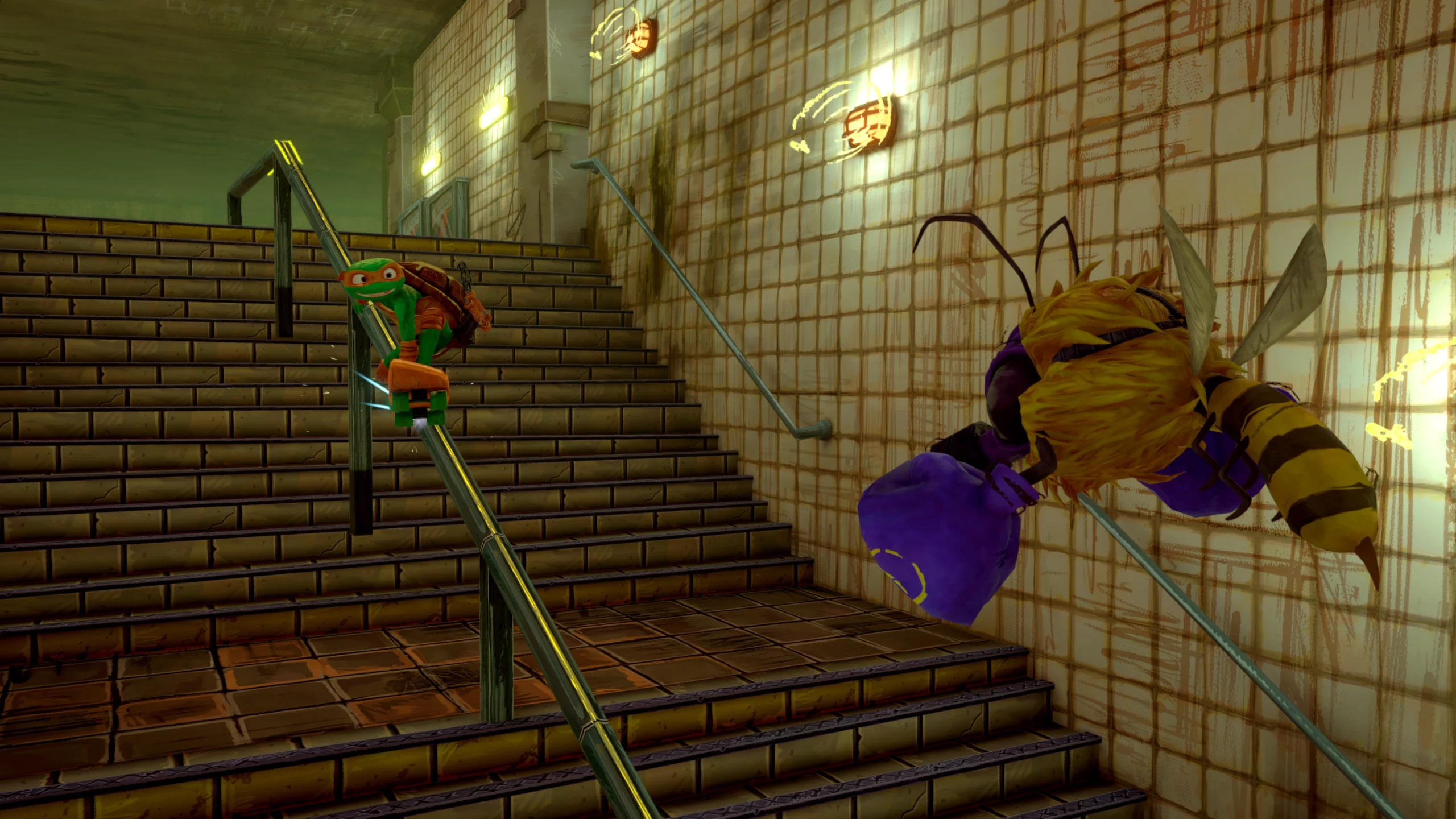 While exploring the game’s expansive map, players can complete main missions and NPC side quests, experiencing adrenaline-fueled boss battles, taking on pizza delivery challenges, and discovering hidden graffiti secrets around the city as players investigate the troublesome Mewbies’ origins. Completing quests to advance the story, players can unlock new abilities via gaining XP and levelling up Ally Bonds through immersive and infectiously humorous dialogue. Adding to the mayhem, players can even team up with a buddy in up to 2-player couch co-op as they vie to restore peace to New York City and help the Turtles achieve their dreams of attending a regular high school.